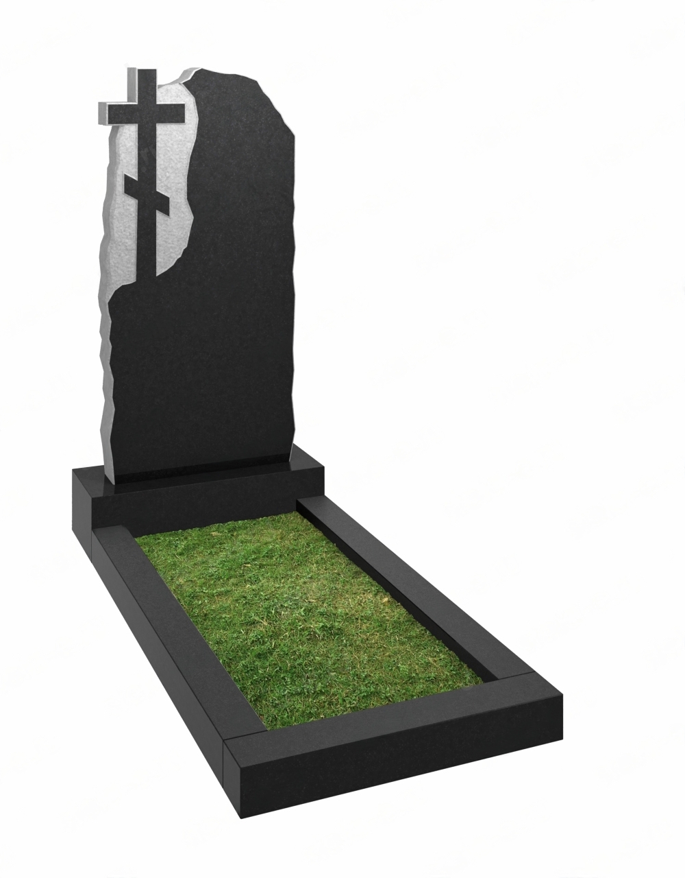 Данный памятник вертикальной формы рекомендуется устанавливать православным верующим. Основная часть стелы темного цвета с плавно-изогнутыми краями, создающих арку. Слева в верхней части памятника расположен крест на светлом фоне. Мемориал сочетает два цвета. Чаще используется гранит габбро диабаз в сочетании с другими видами.