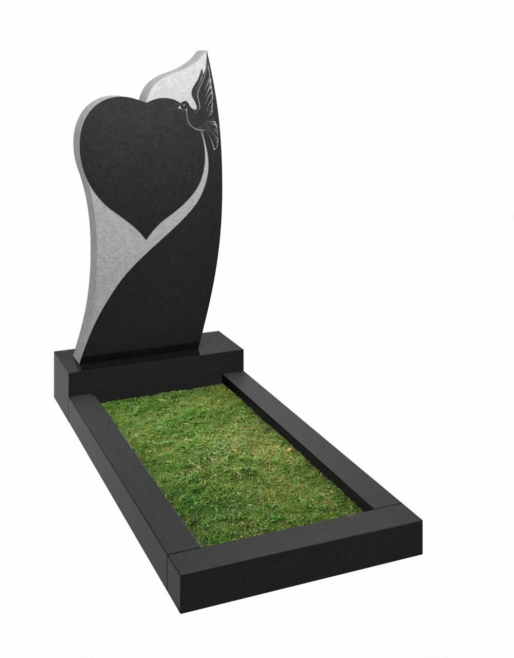 Стела на фигурном памятнике В-64 состоит из двух цветов. На светлом фоне вырезано сердце, куда прилетела птица, как бы символизирующая продолжение жизни на небесах. Памятник смотрится красиво, лаконично. Если возникнут затруднения в выборе материала для изготовления памятника наши менеджеры всегда придут на помощь ,ответят на все возникшие вопросы.