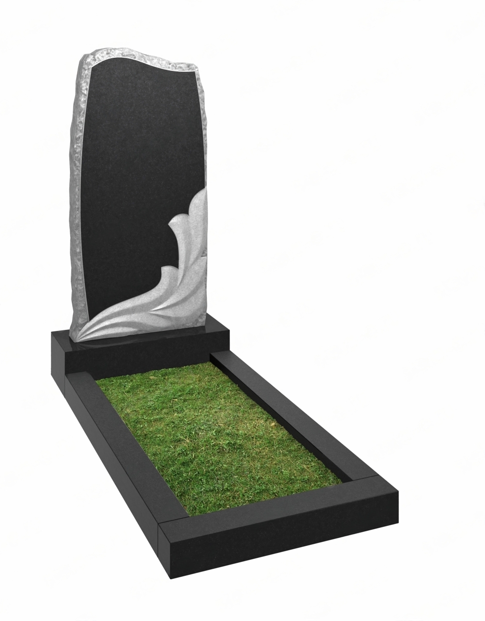 Изысканность памятнику создает стела ,по всему краю которой проходит светлая окантовка, а внизу с левого угла тянется вправо красивая, оригинальная ветвь ,также выполненная в светлом цвете. Материал -гранит, выбор которого зависит от Вас.