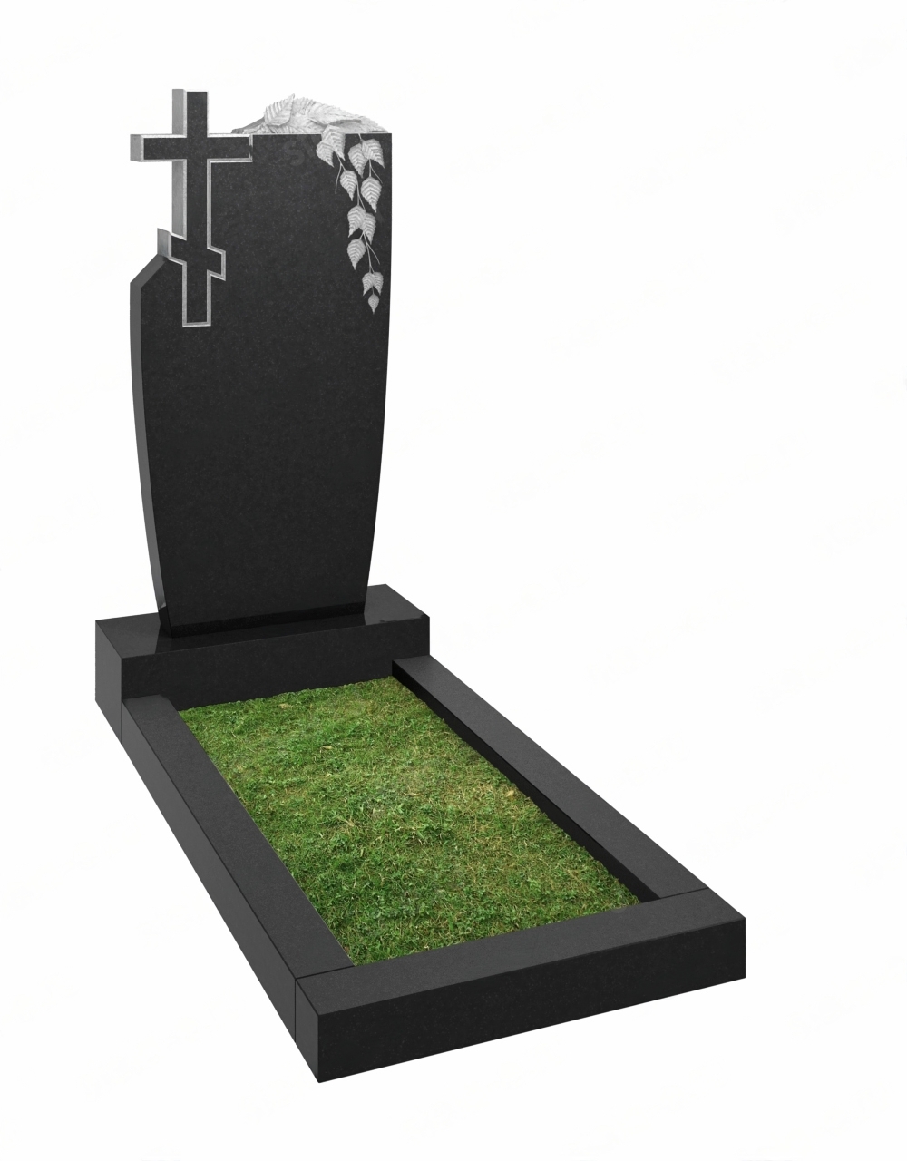 Прекрасный памятник представлен для православных верующих. Резная стела, где с левой стороны находится православный крест, а с левой, нависает белая веточка-символ продолжающейся жизни. Памятник выполняется из гранита.