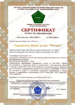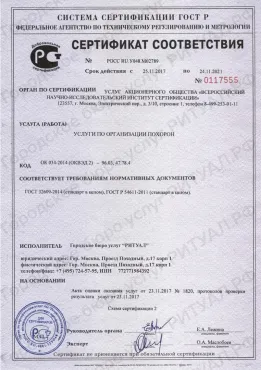 Бюро услуг "Ритуал" осуществляет свою деятельность на основании Федерального закона от 12.01.1996 г. №8-ФЗ «О погребении и похоронном деле»
